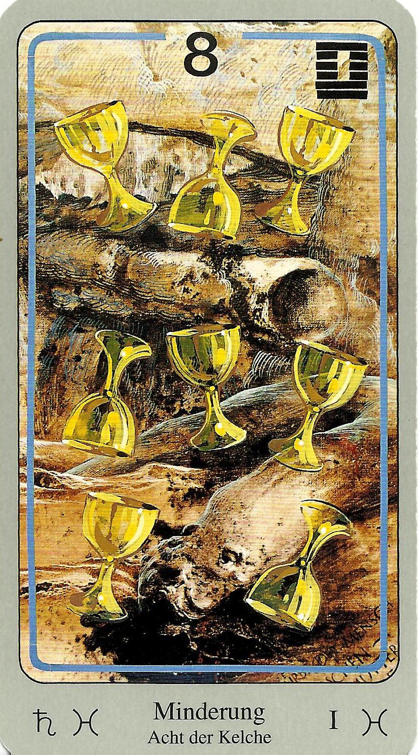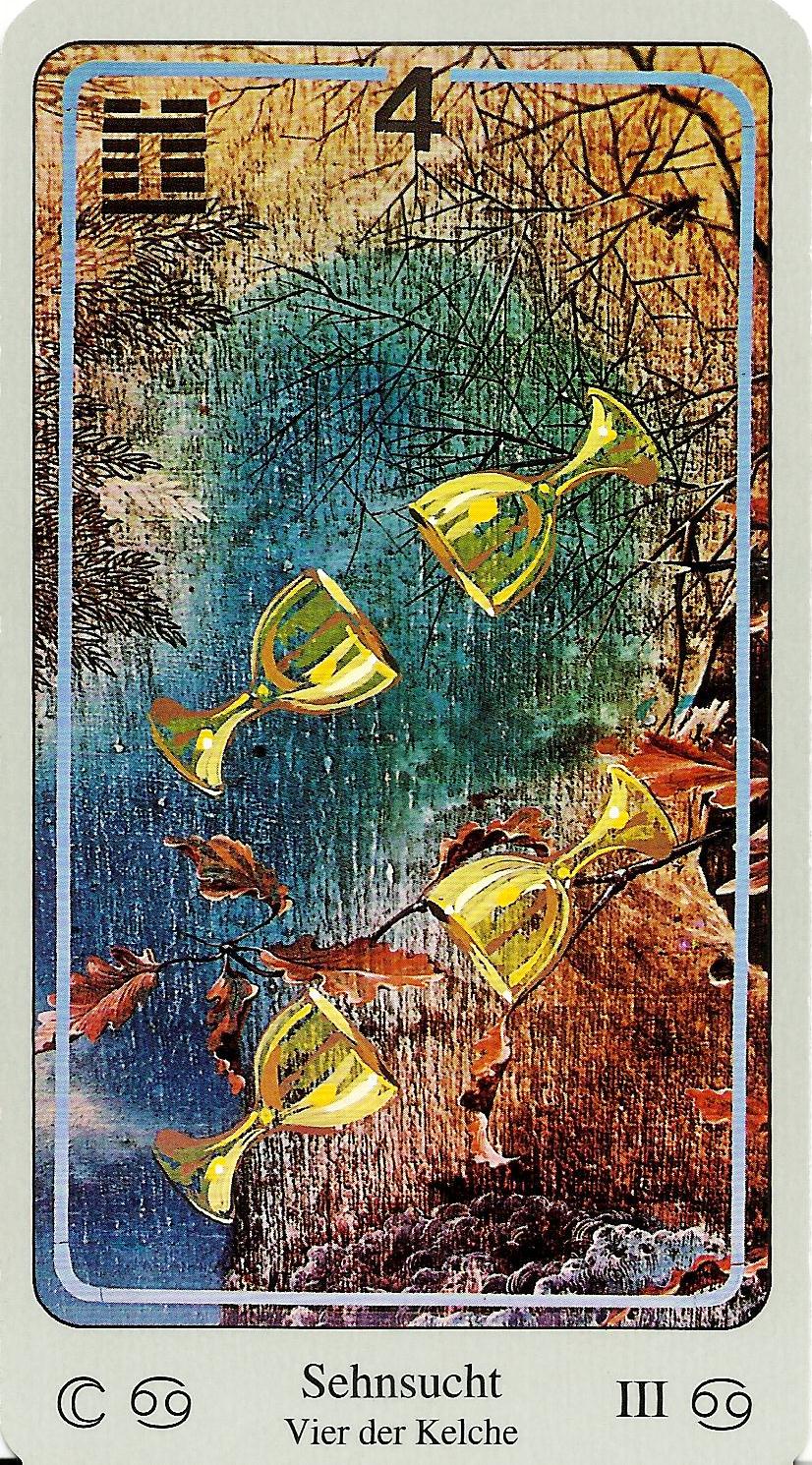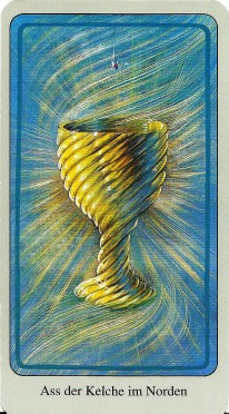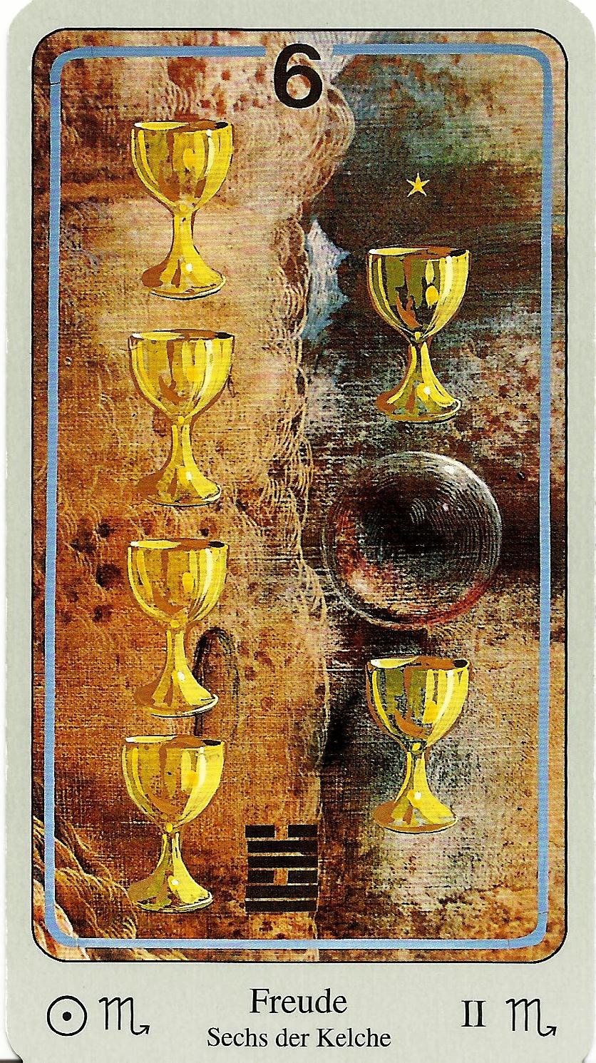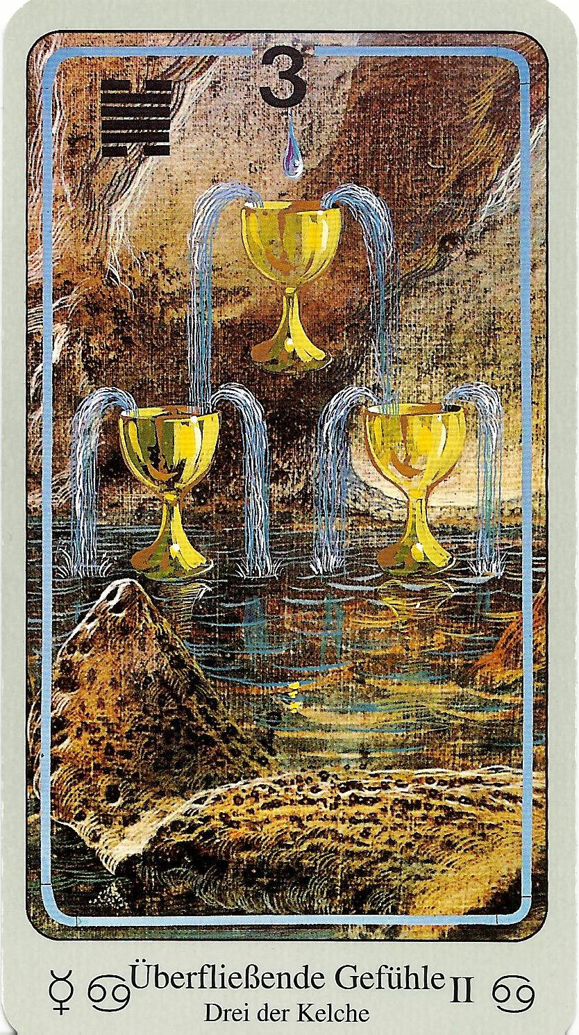 Na vyobrazeních karet nejsou všechny poháry naplněny vodou. Některé jsou dokonce prázdné. Modrá, barva vodního elementu, se v nějaké podobě vyskytuje na všech kartách. Při výběru pozadí a uskupení symbolů myslel Hermann Haindl spíše na poháry než na vodu samotnou.