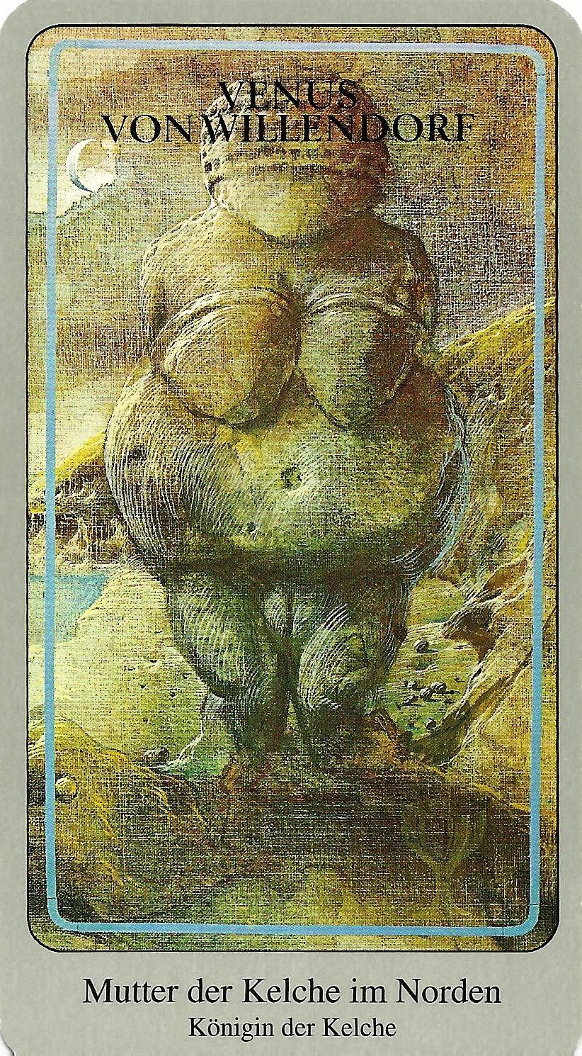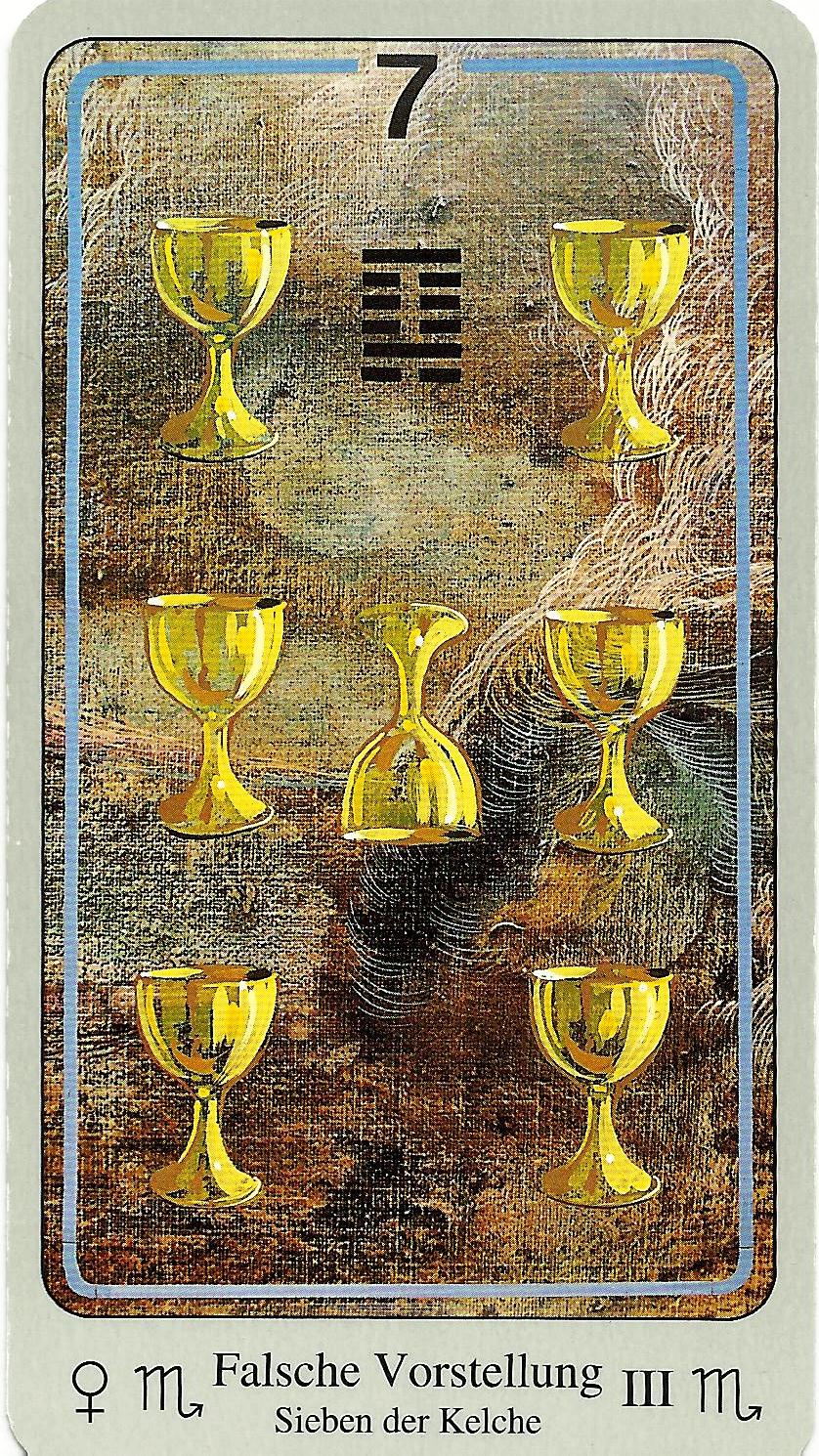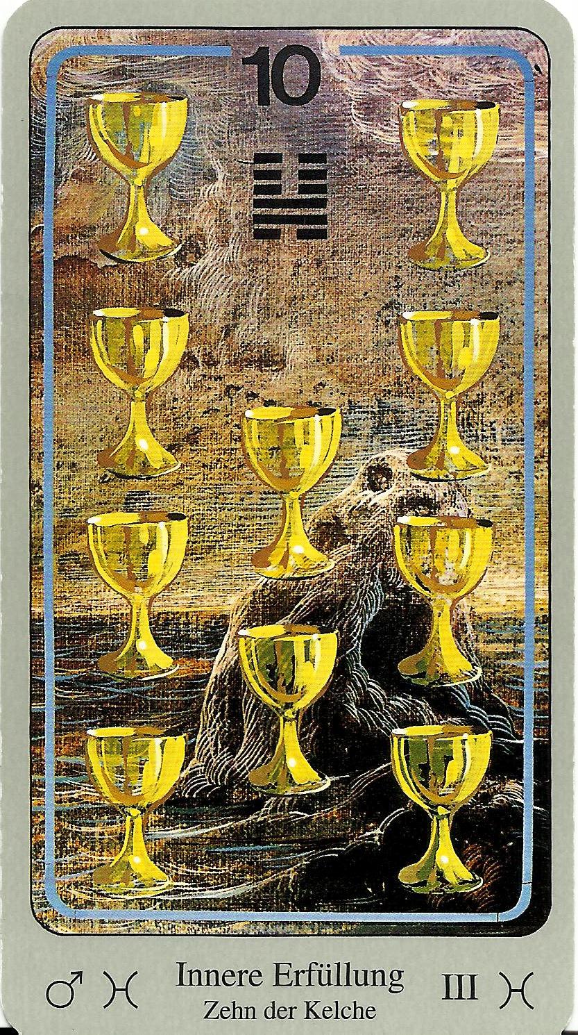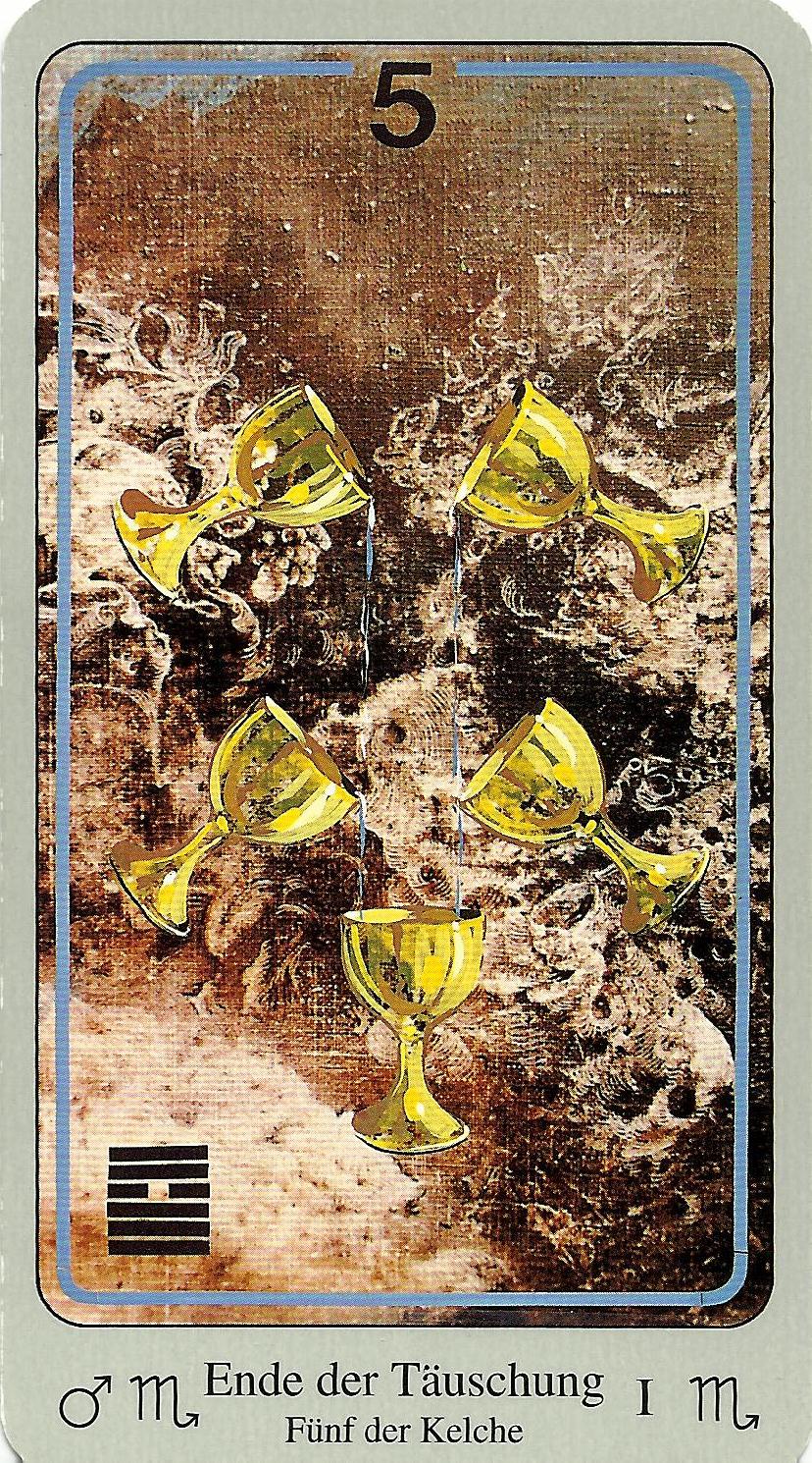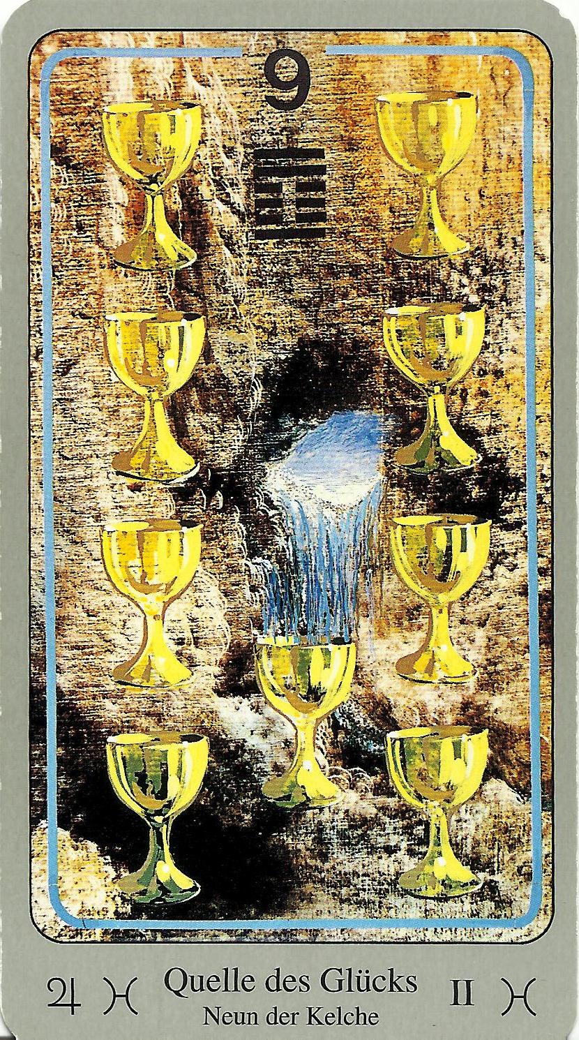 Na vyobrazeních karet nejsou všechny poháry naplněny vodou. Některé jsou dokonce prázdné. Modrá, barva vodního elementu, se v nějaké podobě vyskytuje na všech kartách. Při výběru pozadí a uskupení symbolů myslel Hermann Haindl spíše na poháry než na vodu samotnou.